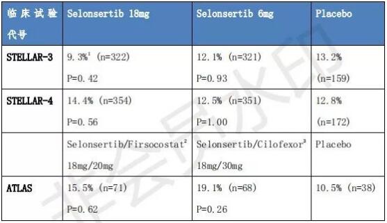 ÔÚÁªÊÊÓÃҩʵÑéÖУ¬£¬ £¬£¬£¬ £¬£¬Gilead 12Ô·ÝÓÖÐû²¼ÁËÒ»¸öÃûΪATLASµÄ2ÆÚÁÙ´²Ð§¹û¡£¡£¡£¡£¡£¡£¡£Òź¶µÄÊÇselonsertibÍŽáÖÎÁƵÄÁÆÐ§Ò²Ã»ÓÐÌåÏÖ³öÀ´¡£¡£¡£¡£¡£¡£¡£¸ÃÑо¿ÕÐļ392ÃûÑÏÖØ¸ÎÏËά»¯£¨F3-F4£©µÄNASH»¼Õߣ¬£¬ £¬£¬£¬ £¬£¬½ÏÁ¿ACCÒÖÖÆ¼Áfirsocostat £¨20mg£©£¬£¬ £¬£¬£¬ £¬£¬FXR¼¤¶¯¼Ácilofexor£¨30mg£©£¬£¬ £¬£¬£¬ £¬£¬selonsertib£¨18mg£©ÒÔ¼°ÈýÕßÖ®¼äÁ½Á½×éºÏÓëο½å¼ÁÏà±È¶Ô¸ÄÉÆÏËά»¯µÄÓ°Ïì¡£¡£¡£¡£¡£¡£¡£ÓÃÒ©48ÖÜʱ£¬£¬ £¬£¬£¬ £¬£¬selonsertib/firsocostat×éºÏÓÐ15.5%£¨p=0.62vs.placebo£©NASHÎÞ¶ñ»¯ºÍÏËά»¯¸ÄÉÆÖÁÉÙ1¼¶µÄ²¡È˱ÈÀý£¬£¬ £¬£¬£¬ £¬£¬selonsertib/cilofexor×éºÏÓÐ19.1% £¨p=0.26£©£¬£¬ £¬£¬£¬ £¬£¬¶øÎ¿½å¼Á×éΪ10.5%¡£¡£¡£¡£¡£¡£¡£cilofexor/firsocostat×éºÏÕâÒ»ÊýֵΪ20.9%£¨p=0.17£©£¬£¬ £¬£¬£¬ £¬£¬µ«ÕâÒ»×éºÏÔÚһЩ¶þ¼¶ÖÕµãÉÏÈ¡µÃÁËÓëο½å¼Á×éͳ¼ÆÑ§ÒâÒåµÄ²î±ð¡£¡£¡£¡£¡£¡£¡£ÔÚËæºó¹«Ë¾Ðû²¼µÄ¸ü¶àÁªÓÃÁÙ´²Ð§¹ûÖУ¬£¬ £¬£¬£¬ £¬£¬cilofexor/firsocostatµÄ×éºÏȷʵÄÜÈ¡µÃ²»ÉÙÆð¾¢µÄÁÙ´²Ð§¹û¡£¡£¡£¡£¡£¡£¡£