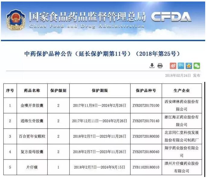 ¡¡¡¡2018Äê2ÔÂ24ÈÕ£¬£¬£¬£¬£¬¹ú¼Òʳҩ¼à×ܾÖÐû²¼¡¶ÖÐÒ©±£»£»£»£»£»£»£»£»¤Æ·ÖÖͨ¸æ(ÑÓÉì±£»£»£»£»£»£»£»£»¤ÆÚµÚ11ºÅ)£¬£¬£¬£¬£¬¾¹ú¼ÒÖÐÒ©Æ·ÖÖ±£»£»£»£»£»£»£»£»¤ÉóÆÀίԱ»á×éÖ¯µÄίԱÉóÆÀ¡¢¹ú¼ÒʳÎïÒ©Æ·¼àÊÓ¹ÜÀí×ܾÖÅú×¼ºó£¬£¬£¬£¬£¬Åú×¼ÒÔÏÂ5¸öÆ·ÖÖÑÓÉì±£»£»£»£»£»£»£»£»¤ÆÚ¡£¡£¡£¡£¡£¡£