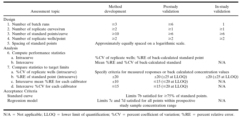 ÔÚÑо¿ÖÐÑé֤ʱ£¬£¬£¬£¬£¬£¬£¬³ýÁËÔÚÊӲ쵽»ùÖÊ×ÌÈÅʱÐèÒªÌØÊâÏ¡ÊÍÑù±¾Í⣬£¬£¬£¬£¬£¬£¬Ã»ÓÐÓëÑù±¾ÖƱ¸Ïà¹ØµÄ½ÓÊܱê×¼¡£¡£¡£¡£¡£¡£¡£¡£ÓÉÓÚDZÔڵĻùÖÊ×ÌÈŶøµ¼ÖÂÖØÐÂÆÊÎöÑùƷʱ£¬£¬£¬£¬£¬£¬£¬Ó¦µ±Ô¤ÏÈÉ趨²¢Í¨ÀýµØÓ¦ÓÃÏà¹ØÖ¸µ¼ÔÔò¡£¡£¡£¡£¡£¡£¡£¡£ÔÚ»ùÖÊÅú´Îת±äµÄÇéÐÎÏ£¬£¬£¬£¬£¬£¬£¬Ó¦µ±ÖƱ¸ÏàͬŨ¶ÈµÄQCÑùÆ·£¬£¬£¬£¬£¬£¬£¬Ö¤ÊµÓëÑо¿Ç°ÑéÖ¤Êý¾ÝµÄ¿É±ÈÐÔ£¬£¬£¬£¬£¬£¬£¬È»ºó¼ÌÐø¾ÙÐÐÑùÌìÖ°Îö¡£¡£¡£¡£¡£¡£¡£¡£±ê׼У׼ÎSTANDARD CALIBARTOR)ºÍ±ê×¼ÇúÏß½«ÒÑÖªÊýÄ¿±íÕ÷ÓÅÒìµÄ±ê×¼²ÎÕÕ£¨±È£©Î´ý²âÎ£¬£¬£¬£¬£¬£¬analyte£©¼ÓÈëµ½Êʵ±µÄ»ùÖÊÖÐÖÆ±¸±ê׼У׼Ʒ£¬£¬£¬£¬£¬£¬£¬Ôڼȶ¨µÄÆÊÎöÌõ¼þÏÂÌìÉú²¢»ñµÃŨ¶È-ÏìÓ¦¹ØÏµ£¬£¬£¬£¬£¬£¬£¬¼´±ê£¨Ð££©×¼ÇúÏߣ¨standard curve£©¡£¡£¡£¡£¡£¡£¡£¡£Æ¾Ö¤Õâ¸ö±ê£¨Ð££©×¼ÇúÏߣ¬£¬£¬£¬£¬£¬£¬Î´ÖªÑùÆ·ÖÐÆÊÎöÎïµÄŨ¶È¿ÉÒÔͨ¹ýÄÚ²åÒªÁìÅÌËã¡£¡£¡£¡£¡£¡£¡£¡£ÔÚÒªÁ쿪·¢Àú³ÌÖУ¬£¬£¬£¬£¬£¬£¬Ó¦µ±½¨Éè±ê׼ƷµÄŨ¶ÈºÍ½«Ò»ÌõÇúÏßÄâºÏÓÚУ׼Êý¾ÝµÄ»Ø¹éÄ£×Ó£¬£¬£¬£¬£¬£¬£¬´ËÄ£×ÓÐèÔÚÑо¿Ç°Ñé֤ʱ´ú»ñµÃÈ·ÈÏ£¬£¬£¬£¬£¬£¬£¬²¢ÔÚÆÊÎöÑо¿Ñù±¾Ê±Ê¹Óᣡ£¡£¡£¡£¡£¡£¡£±íIII»ã×ÜÁËÆÀ¹À±ê×¼ÇúÏßÊý¾ÝÉè¼ÆºÍÆÊÎö»Ø¹éÄ£×ӵĽ¨Ò飬£¬£¬£¬£¬£¬£¬½«Ê¹ÓñíIVÖеÄÑо¿Ç°ÑéÖ¤µÄ±ê×¼ÇúÏßÊýÌý˵Ã÷ͳ¼ÆÆÊÎöµÄÀú³Ì¡£¡£¡£¡£¡£¡£¡£¡£±íIII. ±ê×¼ÇúÏ߯À¶¨±ê×¼. £¨Î´°üÀ¨¡°Ãª¶¨µã¡±£©