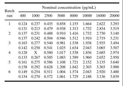 ÔÚ½¨ÉèУ׼ģ×Óʱ£¬£¬£¬£¬£¬£¬£¬½¨ÒéÆÊÎöÖÁÉÙ3¸ö×ÔÁ¦ÔËÐУ¨batch/run£©µÄ±ê×¼ÇúÏßŨ¶È-ÏìÓ¦Êý¾Ý£¬£¬£¬£¬£¬£¬£¬Ã¿´ÎÔËÐÐÓ¦°üÀ¨Á½Ìõ±ê×¼ÇúÏߣ¬£¬£¬£¬£¬£¬£¬ÒÔ±ãÆÀ¹ÀÔËÐÐÄÚ±ê×¼ÇúÏߵĿÉÖØ¸´ÐÔ¡£¡£¡£¡£¡£¡£¡£¡£Ä£×ÓµÄÏàÒËÐÔÈ¡¾öÓÚ±ê×¼µã»ØËãŨ¶ÈµÄRE£¬£¬£¬£¬£¬£¬£¬ÅÌËãÒ»¸öŨ¶ÈµãµÄREÈçÏ£º´Ó»ØËãŨ¶ÈÖмõÈ¥±ê³ÆÅ¨¶È²¢½«Æä²îÖµ³ýÒÔ±ê³ÆÅ¨¶È¡£¡£¡£¡£¡£¡£¡£¡£Í¨³££¬£¬£¬£¬£¬£¬£¬¹ØÓÚÇúÏßÄڵĴó´ó¶¼±ê×¼µã»ØËãŨ¶ÈµÄ¾ø¶ÔREӦΪ20%¡£¡£¡£¡£¡£¡£¡£¡£ÀýÈ磬£¬£¬£¬£¬£¬£¬Æ¾Ö¤¼ÓȨ5PL»Ø¹éÇúÏßÄâºÏƽ¾ù¹âÎüÊÕÖµ£¨±íIVÖеÚ6¸öÔËÐеÄÊý¾Ý£©ËùµÃ³öµÄÄ£×Ó£¬£¬£¬£¬£¬£¬£¬»ØËãŨ¶ÈµÄ¾ø¶ÔREs¶¼ÊÇ<10%£¨±íVºÍͼ1B£©¡£¡£¡£¡£¡£¡£¡£¡£Í¬Ñù£¬£¬£¬£¬£¬£¬£¬ÆäËû5¸öÔËÐеľø¶ÔREsҲʼÖÕÒ»ÖµØ<10%£¨µÚ1¸öÔËÐÐÖеöµã³ýÍ⣩¡£¡£¡£¡£¡£¡£¡£¡£