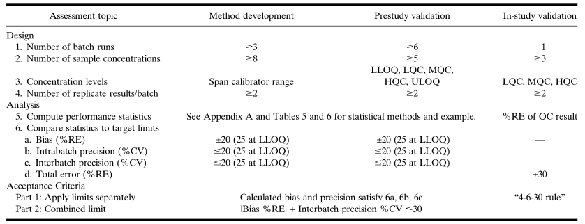 7. K. J. Miller, et al. Workshop on Bioanalytical Methods Validation for Macromolecules: Summary Report. Pharm. Res. 18:1373¨C1383 (2001).
