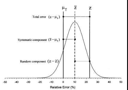 ͼ4. ¶¨Á¿ÆÊÎöЧ¹û×ÜÎó²î£¨z£©µÄ˵Ã÷¡£¡£¡£¡£¡£×ÜÎó²î½ç˵ΪÆÊÎöЧ¹ûÓëÆä±ê³Æ¡°ÕæÊµ¡±Öµ (¦ÌT)µÄÎó²î£¨deviation£©¡£¡£¡£¡£¡£Ò»Ñùƽ³£¼Ù¶¨ÔȳÆÑùÆ·µÄÖØ¸´²â¶¨Ð§¹ûµÄÎó²îÌý´ÓÖÓÐεÄÕý̬ÂþÑÜ¡£¡£¡£¡£¡£Îª±ãÓÚ½ÏÁ¿£¬£¬£¬£¬£¬£¬£¬£¬Îó²îͨ³£ÌåÏÖΪ°Ù·Ö±ÈÏà¶ÔÎó²î (°Ý¼ûͼÖп̶È)£»£»£»£»£»£»£»ÅÌËãÒªÁìÊǽ«Îó²î³ýÒÔ±ê³ÆÖµ£¬£¬£¬£¬£¬£¬£¬£¬ÔÙ³ËÒÔ100¡£¡£¡£¡£¡£×ÜÎó²î¼´ÊÇϵͳÎó²îµÄ×ܺͣ¨systematic component£¬£¬£¬£¬£¬£¬£¬£¬ÓÉÅÌËã³öµÄÆÊÎöƽ¾ùÖµÓë±ê³ÆÖµµÄÎó²îÀ´Ô¤¼Æ£©£¬£¬£¬£¬£¬£¬£¬£¬ÔÙ¼ÓÉÏËæ»úÎó²î£¨random component£¬£¬£¬£¬£¬£¬£¬£¬ÓÉÒ»¸öÆÊÎöЧ¹ûÓëÆÊÎöƽ¾ùÖµµÄÎó²îÀ´Ô¤¼Æ£©¡£¡£¡£¡£¡£