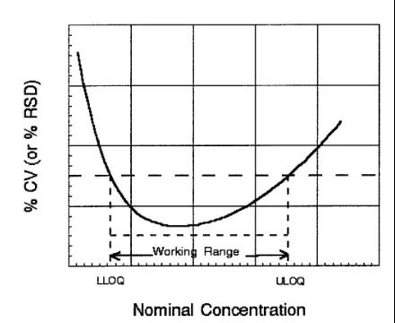 ÔÚÒªÁ쿪·¢ÔçÆÚ£¬£¬£¬£¬£¬£¬£¬£¬¿ÉÒÔʹÓûØËãµÄ±ê׼ƷŨ¶ÈÖµÆðÔ´Ô¤¼Æ¶¨Á¿¹æÄ£¡£¡£¡£¡£¡£ÉԺ󣬣¬£¬£¬£¬£¬£¬£¬ÔòʹÓüӱêÑùÆ·À´ÓÅ»¯Ö®Ç°Ô¤¼ÆµÄ¶¨Á¿¹æÄ£¡£¡£¡£¡£¡£Ôڴ˽׶Σ¬£¬£¬£¬£¬£¬£¬£¬ÔÚÔ¤ÆÚµÄLLOQºÍULOQŨ¶ÈÖÜΧÆÊÎö¸ü¶àŨ¶ÈµãÊÇÓÐÒæµÄ¡£¡£¡£¡£¡£¾«¶ÈÆÊÃæÍ¼ÓÐÖúÓÚÆÀ¹À¶¨Á¿¹æÄ£µÄÔ¤ÆÚ¼«ÏÞ£¨Í¼5£©¡£¡£¡£¡£¡£