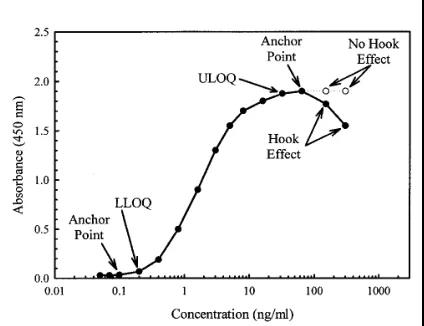 ͼ6.¹³×´£¨Prozone£©Ð§Ó¦µÄÑÝʾ¡£¡£¡£¡£¡£Á½¸öÍŽáµãEIAµÄµä·¶SÐÎŨ¶È-ÏìÓ¦ÇúÏß(¡ñ)£¬£¬£¬£¬£¬£¬£¬£¬°üÀ¨¸ßŨ¶È¹³×´Ð§Ó¦¡£¡£¡£¡£¡£ÏêϸÀ´Ëµ£¬£¬£¬£¬£¬£¬£¬£¬¸ßŨ¶ÈµÄ´ý²âÎﱬ·¢Á˵ÍÓÚÔ¤ÆÚµÄÏìÓ¦¡£¡£¡£¡£¡£ÈôÊÇûÓй³×´Ð§Ó¦£¬£¬£¬£¬£¬£¬£¬£¬È翪»·(¡ð)Ëùʾ£¬£¬£¬£¬£¬£¬£¬£¬½Ï¸ßµÄ´ý²âÎïŨ¶È½«±¬·¢ > ULOQÏìÓ¦£»£»£»£»£»£»£»ÈôÊÇûÓй³×´Ð§Ó¦£¬£¬£¬£¬£¬£¬£¬£¬ÇúÏßµÄÁ¿»¯¹æÄ£ÔÚLLOQºÍULOQÖ®¼ä¡£¡£¡£¡£¡£LLOQºÍULOQÖ®ÍâµÄ궨µã½öÓÃÓÚÇúÏßÄâºÏ¡£¡£¡£¡£¡£