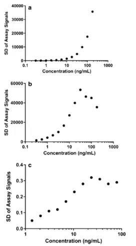 ÏÂÃæÆÀ¹ÀÁ˱í1ÖÐ3ÌõУ׼ÇúÏßÉϲâÊÔÐźŵıê×¼Îó²î£¨SD£©£¬£¬£¬£¬£¬£¬£¬£¬¸ÃSDÊÇÒì·½²îÐÔµÄÖ±½ÓÖ¸±ê¡£¡£¡£¡£¡£¡£¡£Õâ3ÌõУ׼ÇúÏßÉϲâÊÔÐźŵÄSD£¨±äÒìÐÔvariability£©²»ÊǺ㶨µÄ£¬£¬£¬£¬£¬£¬£¬£¬¶øÊÇËæ×ÅУ׼µãµÄŨ¶È¶ø¸Äת±äµÄ£¨Í¼3£©¡£¡£¡£¡£¡£¡£¡£