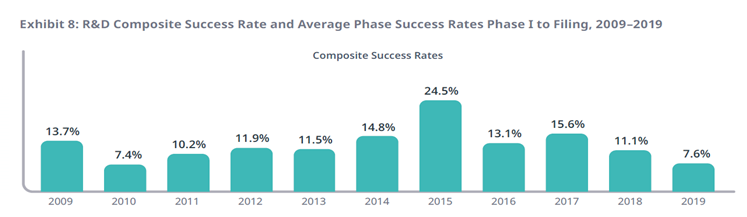 2009-2019立异药临床试验总乐成率