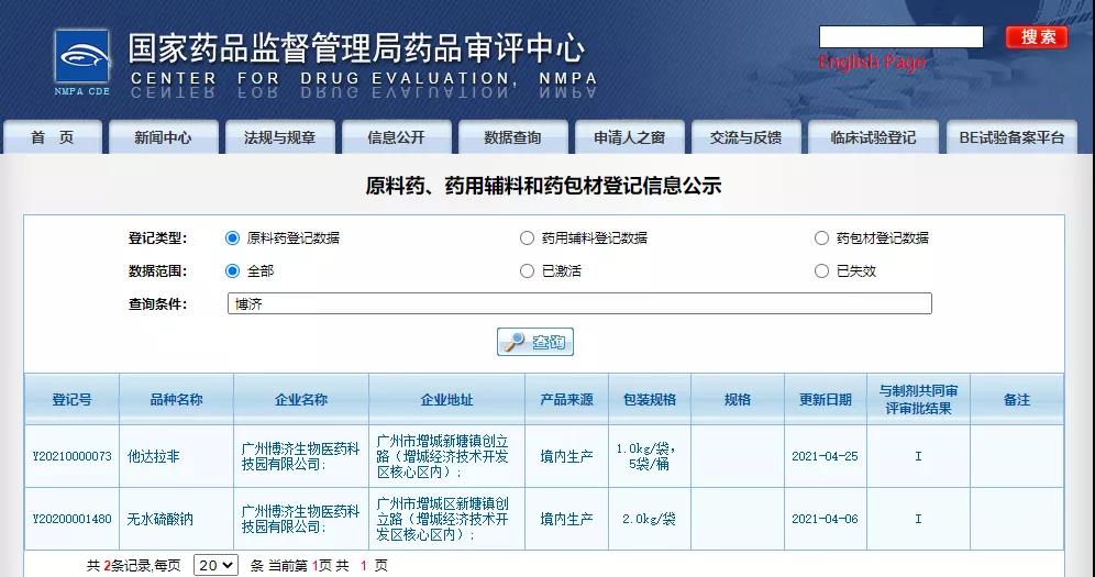 克日,,,,,,,7790必发集团医药子公司广州7790必发集团生物医药科技园有限公司自主开发的他达拉非质料药(挂号号Y20210000073)和自主开发的无水硫酸钠质料药(挂号号Y20200001480)在国家药品监视管理局乐成备案挂号。。。。。。。。